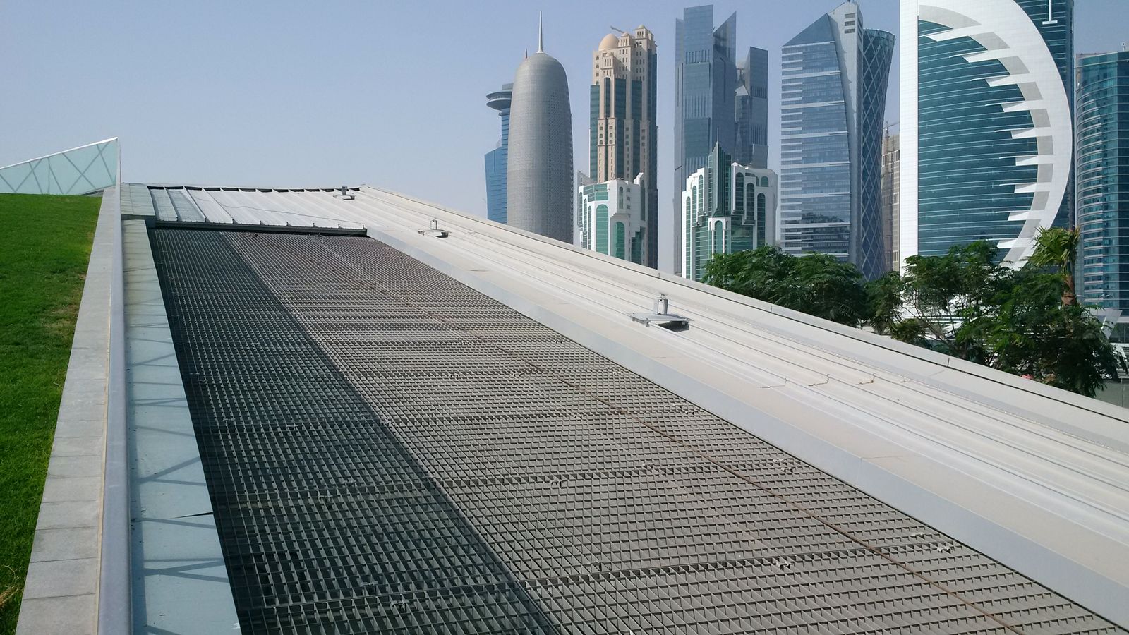 Kee Line® Wireanka can create a permanent lifeline on a rooftop without the need to penetrate the roof structure. Each of the wire posts is connected to a weighted structure that keeps the user secure in the event of a fall.