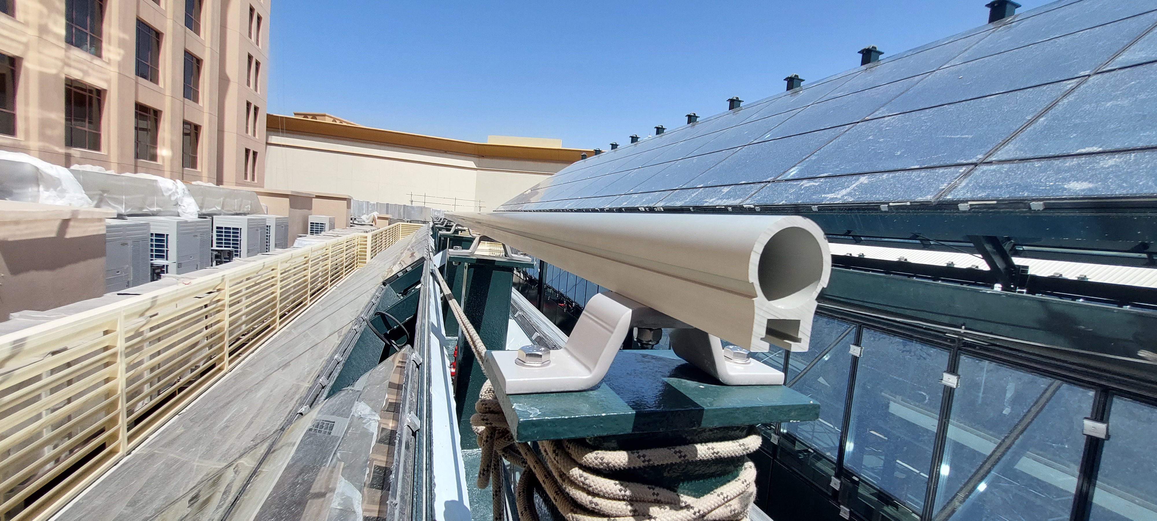 The ProRail can be fixed to structural concrete or steelwork via steel bracketry either directly, or via cantilever arms. The ProRail requires a support bracket every 3m or less and can support a free-ended overhang of up to 500mm. Thanks to the unique wrap-around design the working lines can be placed in a 180° area around the rail.