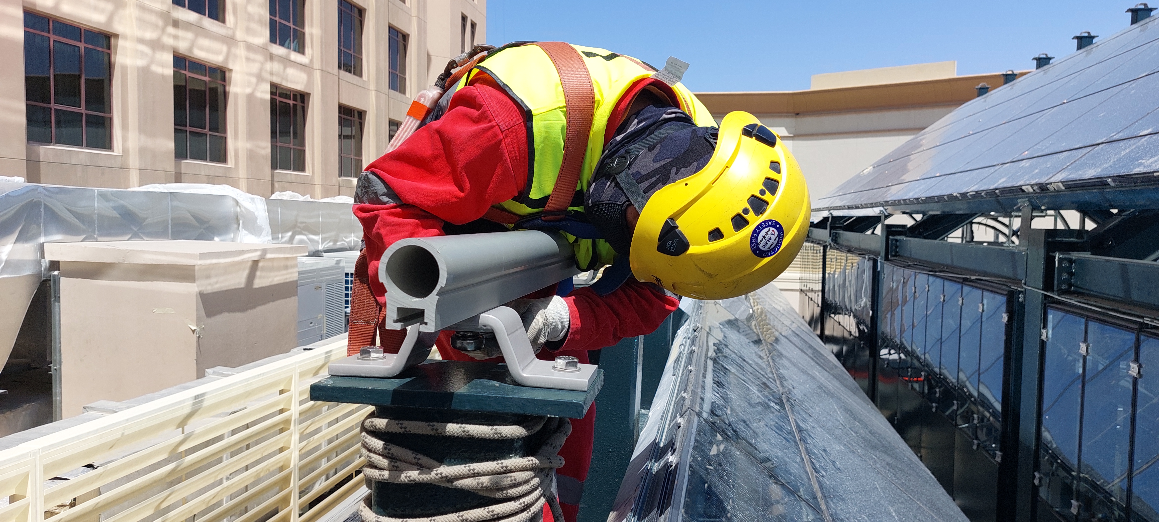 The ProRail SafeLoc gate system at the end of each section ensures that the operative’s backup traveller is still held captive in the rail system while moving the main traveller to a new section. Optionally, the rail system can be fitted with an attachment point to allow the operative to tether himself and the traveller while he’s moving to a fixed point to give an extra level of safety.